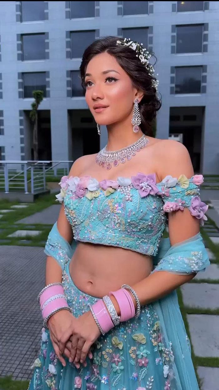 LEHENGA: Georgette Fabric, Designer Flower Work & Embroidery Sequins Work With Cancan & Canvas Patta.
