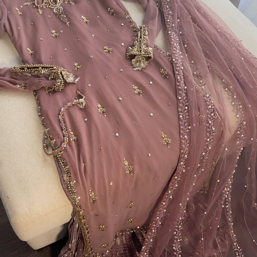 TOP: Georgette With Sequins And Zari Embroidery (Length: 46 Inches).