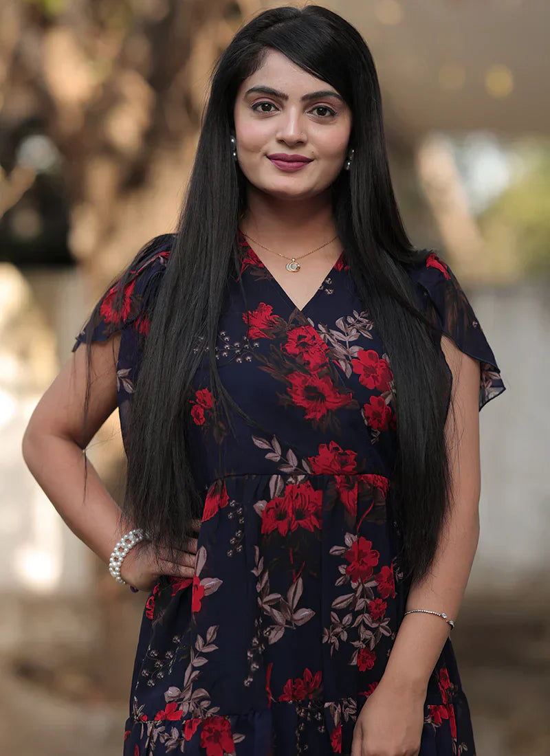 This Mehendi Green Georgette Flower Printed Western Midi Dress is perfect for any occasion. Made with high-quality georgette material, this dress is soft and comfortable to wear. Its unique floral print adds a touch of elegance and style. Perfect for a formal event or a night out. 🌸