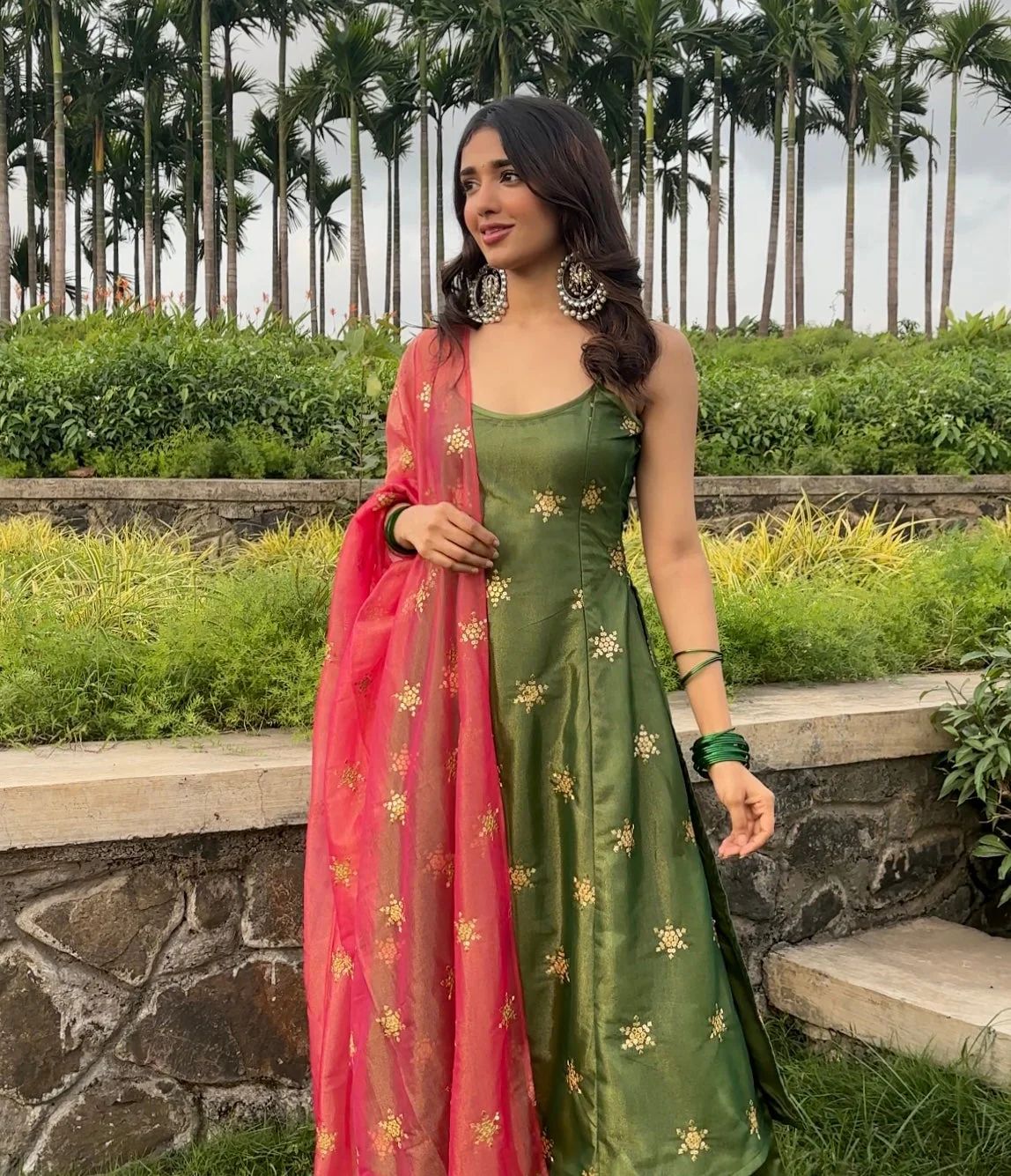 KURTA: Tissue Organza Silk With Zari Embroidery Work (Length: 40 Inches).