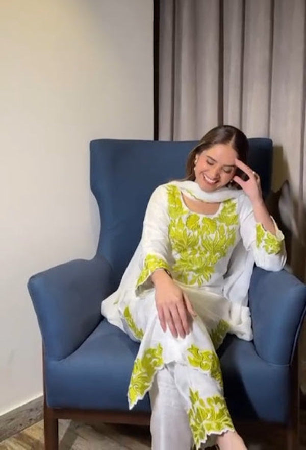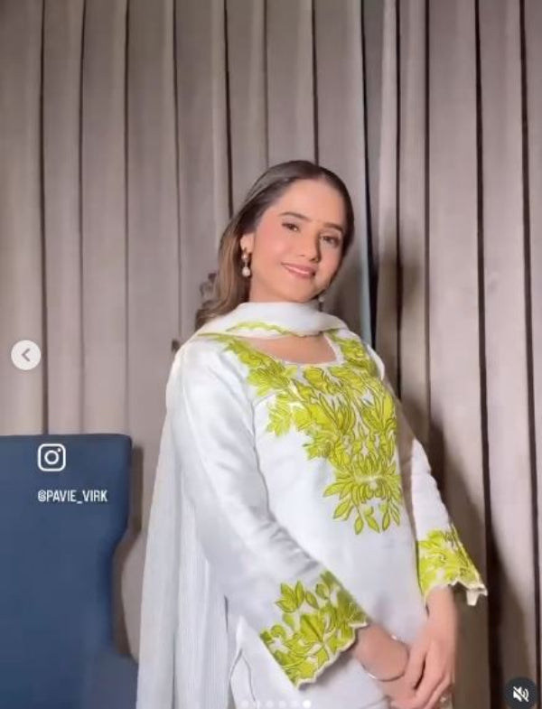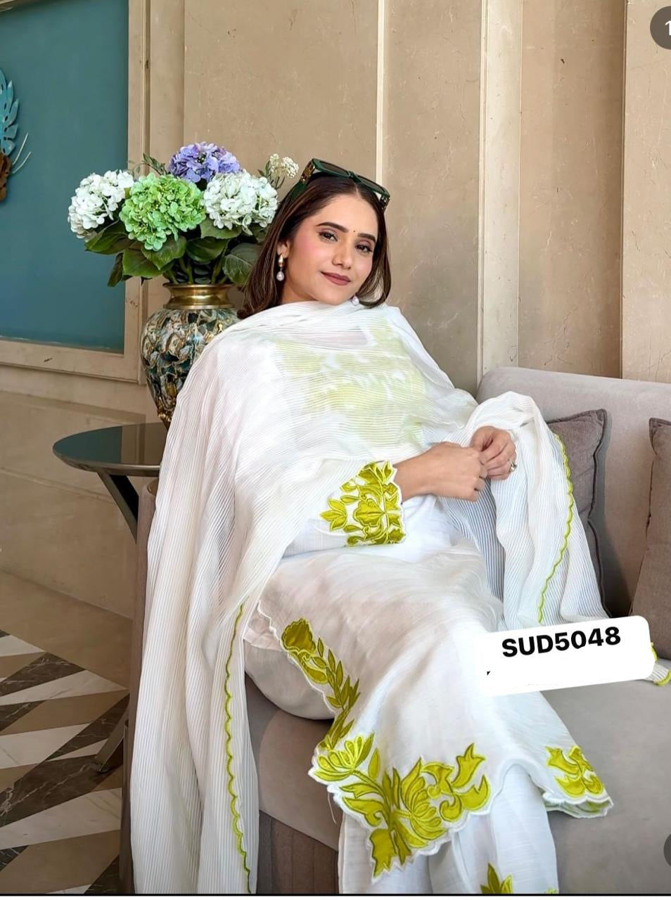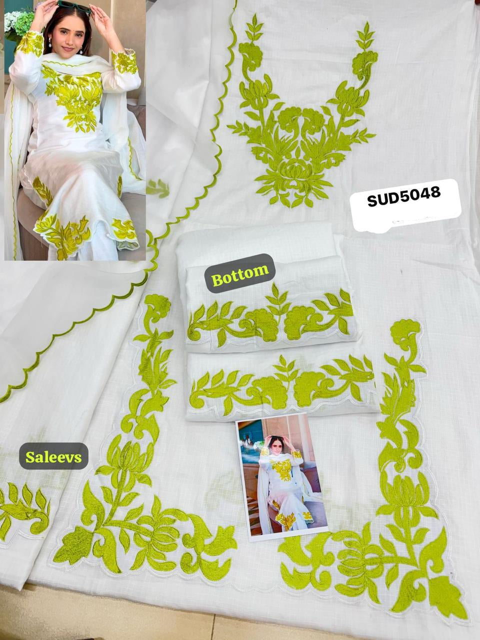 ♠️5mtr Pure Self Chk Camric Cotton Neck & Ghera Thread Cut-work Embroidery Same 2 Same Celebrity-Suit....