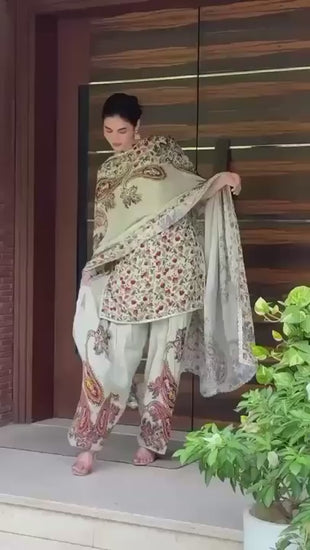 Step into elegance with our stunning printed satin organza suit, crafted to give you a classy, graceful look. Perfect for festive occasions, parties, or casual chic styling! 🌸
